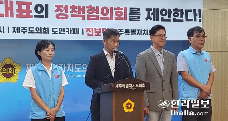 진보당 제주특별자치도당은 29일 제주도의회 도민 카페에서 기자회견을 열고 "지방자치제 도입 30년. 전국 16개 광역시도 중 유일하게 기초자치단체와 기초의회가 없는 곳"이라며 "이를 해결하기 위한 오영훈 도지사, 도내 국회의원을 포함한 10개 정당이 함께하는 제주 행정체제개편 정책 협의회를 제안한다"고 밝혔다.