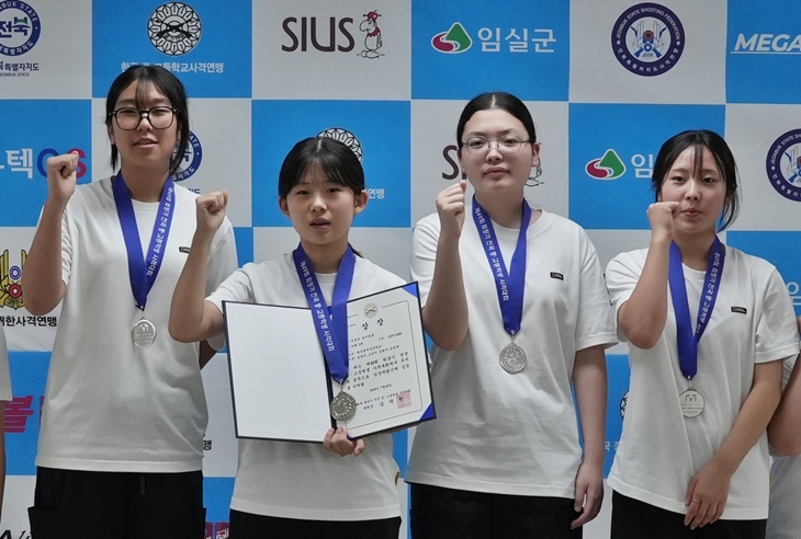 공기권총 단체전 은메달을 따낸 제주동여중 선수단.