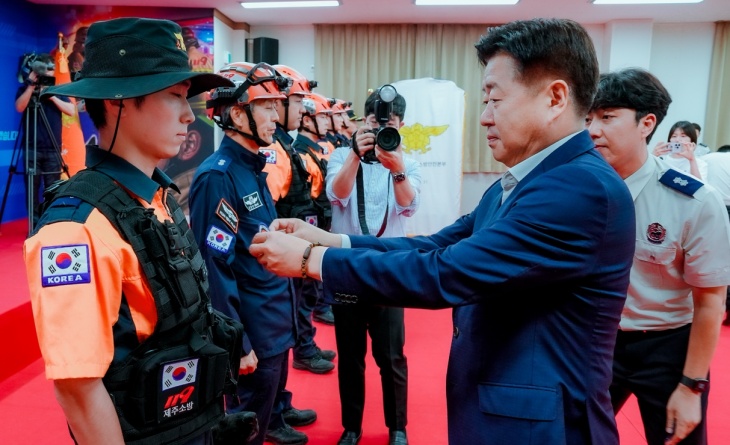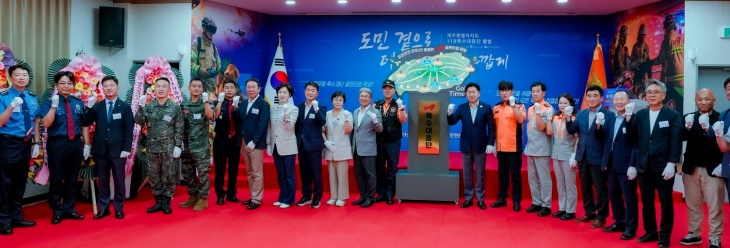 제주소방안전본부는 31일 제주소방교육대에서 오영훈 지사를 비롯해 도내 각 지역 통·리장협의회장, 주민자치위원장 등 100여 명이 참석한 가운데, '119특수대응단' 출범식을 개최했다. 제주소방안전본부 제공