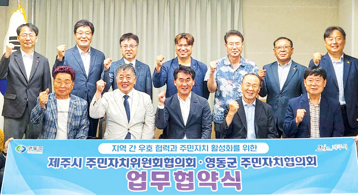 [한라일보] 제주시 주민자치위원회협의회(회장 고정학)와 영동군 주민자치협의회(회장 김재구)는 지난달 30일 시청 3별관 회의실에서 주민자치 활성화와 지역 간 상생 발전을 위한 업무협약을 체결했다.