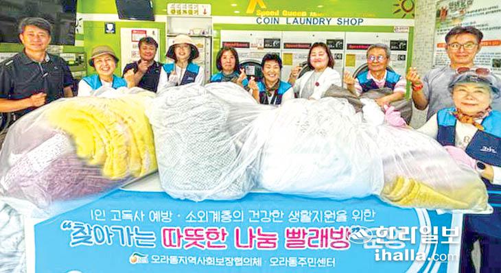 제주시 오라동지역사회보장협의체(위원장 진영진)는 지난달 24일 1인 가구와 소외계층을 대상으로 '찾아가는 따뜻한 나눔 빨래방' 특화사업을 실시했다.