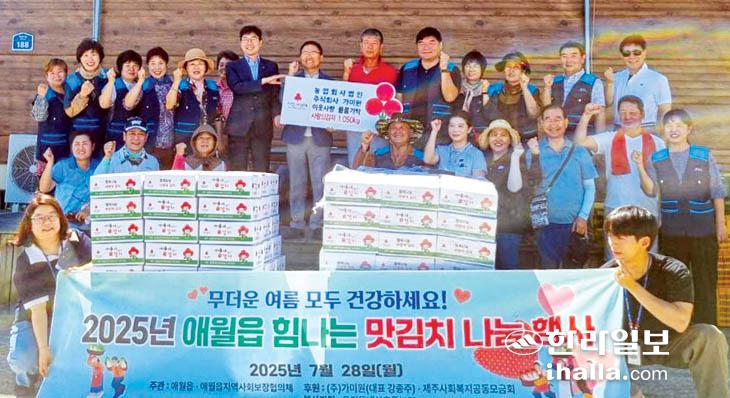 후원된 김치는 애월읍지역사회보장협의체(민간위원장 조성익)를 통해 읍내 취약계층 72가구와 경로당 36곳, 복지시설 22곳에 전달됐다.