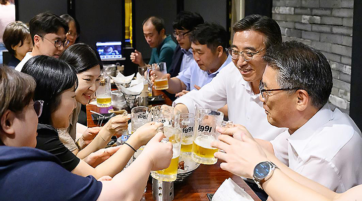 이번 자리는 '시장이 쏜다! 소통의 치맥 한잔'이라는 슬로건 아래 민생경제활력 프로젝트의 하나로 추진됐다. 이날 10여 명의 직원들은 민원 대응·조직문화 등에 대해 솔직한 대화를 나눴고 비용은 오 시장이 직접 계산했다.