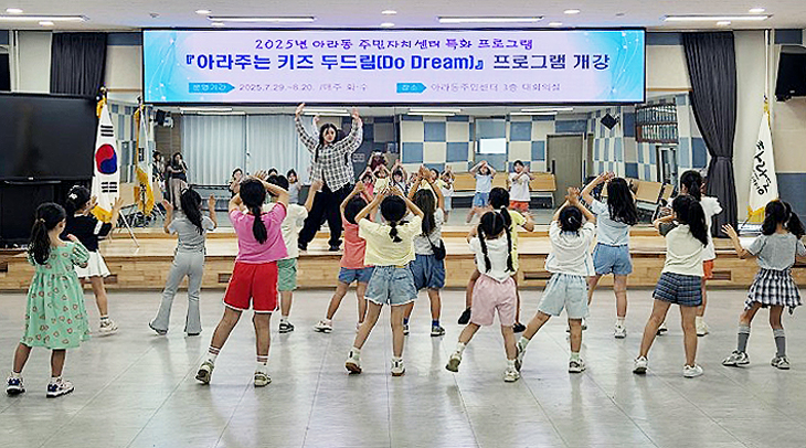 제주시 아라동주민센터(동장 현치하)와 아라동주민자치위원회(위원장 양광수)는 지난달 29일 2025년 아라동 주민자치센터 특화프로그램 '아라주는 키즈 두드림(Do Dream)'을 개강했다.