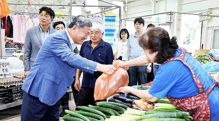 이번 방문은 '신바람 민생안정' 소통 행보 일환으로, 함덕오일시장을 찾아 소비쿠폰을 직접 사용해 제철 과일 등을 구매하고, 구좌읍 세화요양원을 방문해 구입한 물품을 전달했다. 이어 거동이 불편한 입소자 6명을 대상으로 '찾아가는 신청 서비스'를 직접 접수했다.