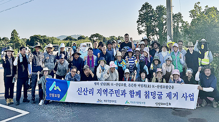 이번 사업은 산림은 물론 생활권 도로변까지 뒤덮으면서 지역 현안 문제로 대두되고 있는 칡 덩굴류 제거를 위해 마련돼, 자치단체·서귀포시산림조합·성산읍 신산리 지역주민 등 50여 명의 자발적인 참여로 진행됐다.