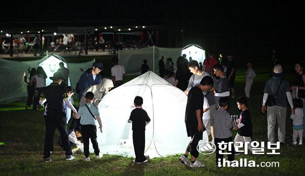 [한라일보] 지난 2일 서귀포시 성산읍 제주자연생태공원에서 열린 '가족과 함께하는 야간 등화 곤충관찰체험'에 참가한 가족들이 체험활동을 하고 있다. 강희만기자