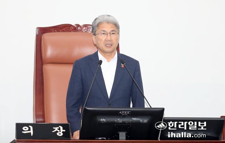 개회사하는 이상봉 제주자치도의회 의장. 제주자치도의회 제공