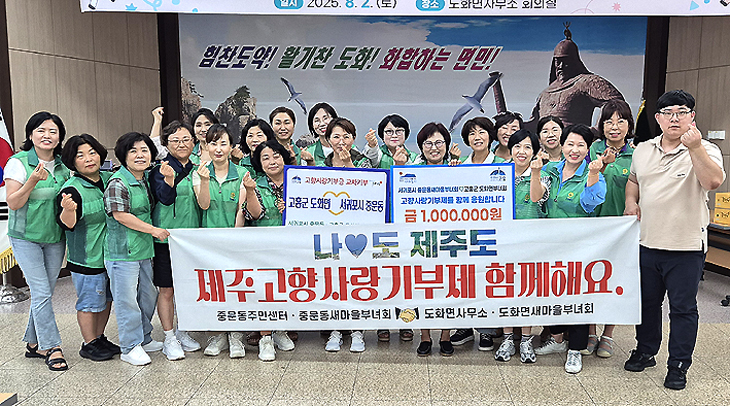 서귀포시 중문동새마을부녀회(회장 이윤숙)는 지난 2~3일 전라남도 고흥군 도화면새마을부녀회(회장 장선화)와 교류·상생 행사를 가졌다. 두 단체는 이번 교류활동에서 서로 간 고향사랑기부제(100만원)에도 참여하고, 양 지역의 특산물도 교환했다.