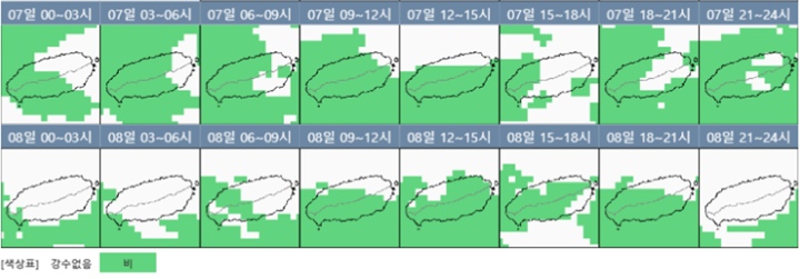 7일부터 8일까지 강수예상도. 기상청 홈페이지 캡처