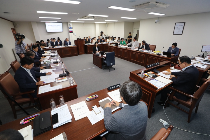 7일 열린 제주도의회 제441회 임시회 교육위원회 1차 회의에서 의원들이 제주도교육청으로부터 주요업무보고를 받은 후 질의하고 있다. 제주도의회 제공