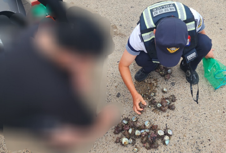 금채기 소라 불법 채취 행위가 기승을 부리고 있다. 사진은 단속 현장. 제주해경 제공.