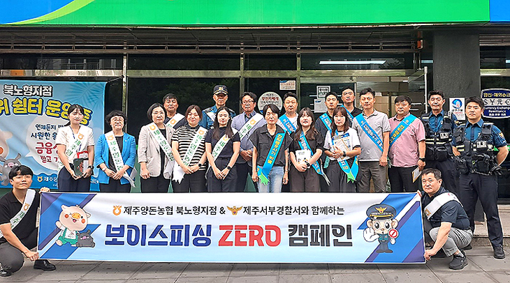 제주양돈농협(조합장 고권진)은 지난 8일 제주서부경찰서, 노형 지구대(대장 강희용)와 함께 노형동 주택가 일대에서 금융취약계층의 사기 피해 예방을 위한 '보이스피싱 ZERO 거리 캠페인'을 실시했다.