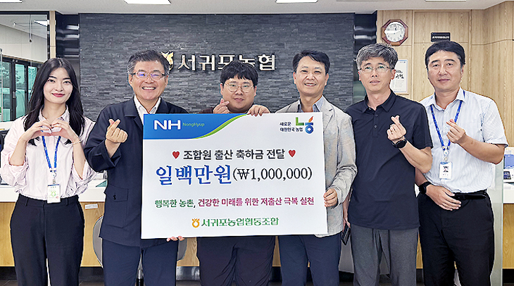 서귀포농협(조합장 정기철)은 지난 7일 서귀포농협 서부지점에서 올해 상반기 동안 자녀를 출산한 조합원 6명에게 각 100만원씩 총 600만원의 출산 축하금을 전달했다.