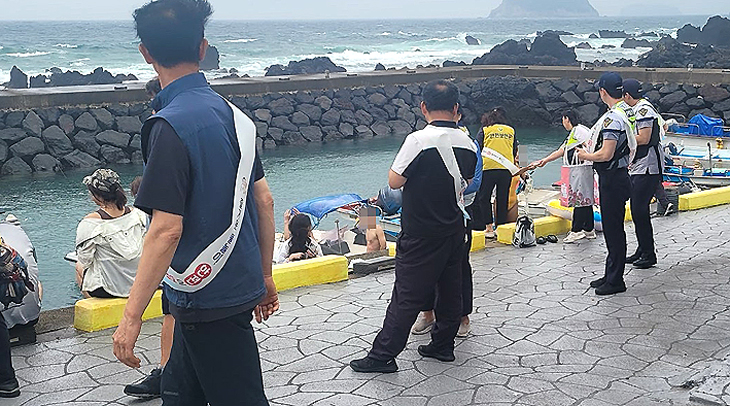 서귀포시는 지난 9일 지역 내 주요 물놀이 구역인 해수욕장과 연안지역 7개소에서 '민·관 합동 수상안전 캠페인'을 실시해 ▷물놀이 안전수칙 계도·홍보 ▷음주·다이빙 등 위험행위 예방활동 ▷안전표지판과 구명장비 안전장비 설치 상태 점검 활동을 벌였다.