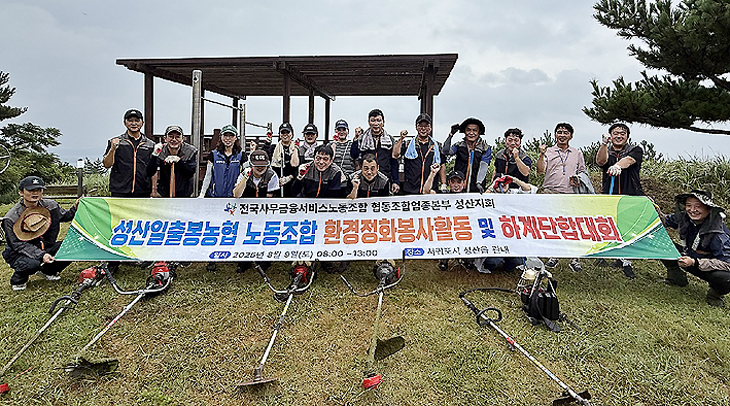 전국사무금융서비스노동조합 협동조합업종본부 성산지회(지회장 강정환)는 지난 9일 서귀포시 성산읍 대수산봉 일대 산책로 환경정비활동을 실시했다.