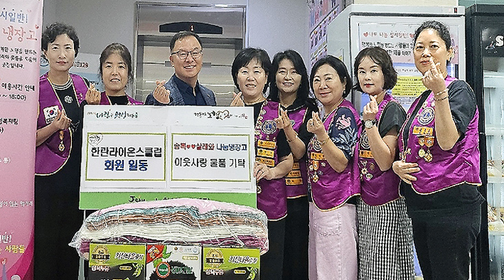 [한라일보] 국제라이온스협회 354-G지구 한란라이온스클럽(회장 김정림)은 지난 11일 제주시 노형동에 위치한 노형주민센터의 나눔 냉장고 '솜뽁살레'에 물품과 송월타월 수건 50장을 기탁했다. 기탁된 물품은 노형동을 포함한 인근 지역의 어려운 이웃들에게 전달된다.
