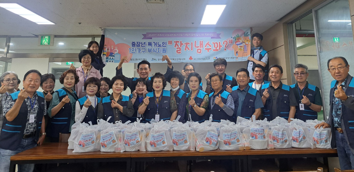 제주시 일도2동지역사회보장협의체(공동위원장 강경임·김상훈)는 지난 9일 말복을 맞아 '잘 지냄수꽈?'안부확인 부식지원 사업의 일환으로 고독사 위험이 높은 중장년 1인 가구 총 40가구에 삼계탕과 밑반찬을 전달했다.