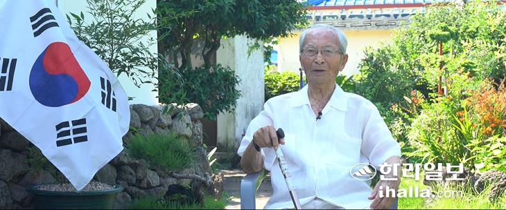 애국가 1절을 부르고 있는 강태선 애국지사 영상. 제주도 제공