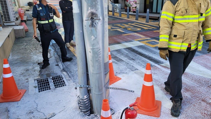 덤프트럭 전신주 추돌사고. 제주소방안전본부 제공