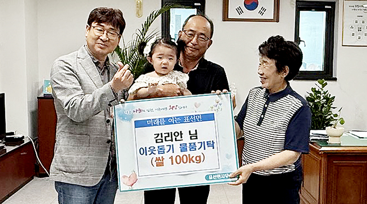 서귀포시 표선면 세화3리 김리안 양(만1세)은 지난 14일 생일을 기념해 표선면(면장 문철환)에 취약계층 지원을 위한 쌀 100㎏을 기탁했다.