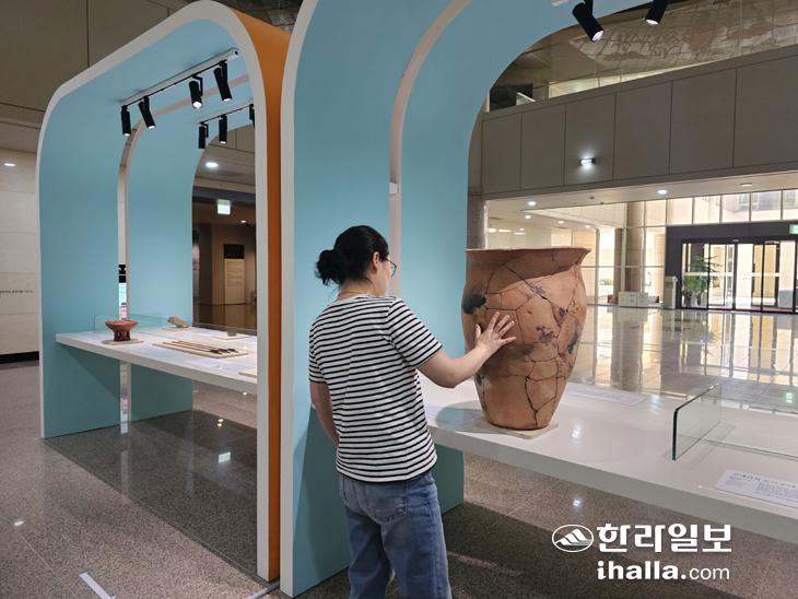 곽지리식 토기를 체험하는 관람객. 국립제주박물관 제공