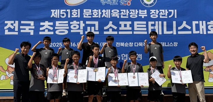 문화체육부장관기 소프트테니스대회에 참가한 아라초 선수단.