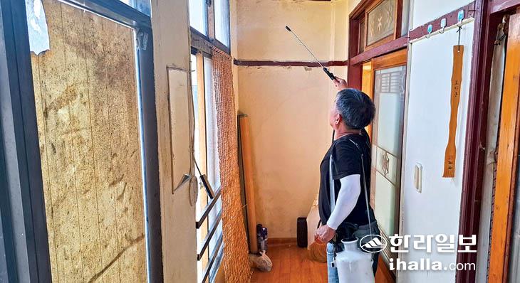 서귀포시 송산동지역사회보장협의체(위원장 강만익·홍기확)는 지난 20일 여름철 지역 주민들의 쾌적한 주거환경을 위해 장애인과 저소득층 등 취약계층 50가구를 대상으로 해충 방역과 감염병 예방을 위한 소독 서비스를 제공했다.