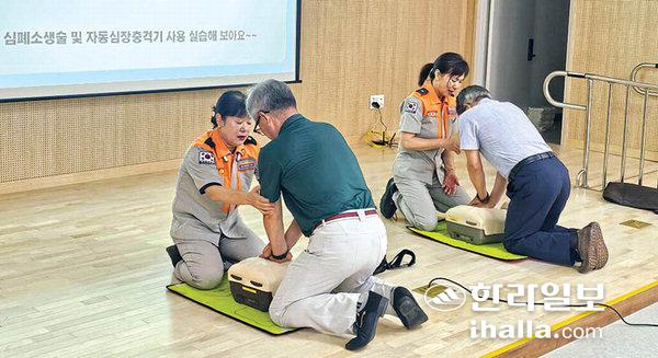 이번 교육은 제주소방서 여성의용소방대원들이 강사로 참여해 이론 강의와 실습을 병행했다.