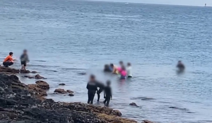 지난 오후 6시 11분쯤 제주시 신흥 방파제 북쪽 약 20m 해상에서 스노클링하던 40대 남성 A씨가 구조 요청을 하자 시민과 휴무 순경이 구조에 나섰다. 제주해양경찰서 제공