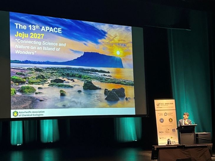 제주특별자치도와 제주관광공사는 지난 22일 뉴질랜드 크라이스트처치에서 열린 국제화학생태학회(ISCE)-아시아태평양화학생태학회(APACE) 공동 학술대회에 참가, 2027년 아시아태평양화학생태학회(Asia-Pacific Association of Chemical Ecologists 2027)를 제주로 유치하는 데 성공했다고 26일 밝혔다.