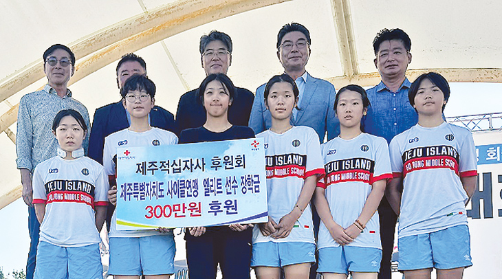 제주적십자사후원회(회장 신영민)는 제주도사이클연맹에 '엘리트 선수 장학금'을 위해 300만원을 지원했다.
