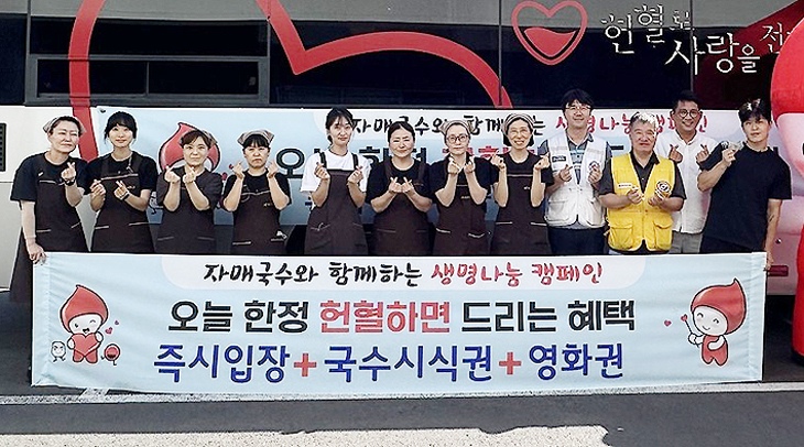 대한적십자사 제주특별자치도혈액원은 지난 23일 자매국수와 함께 헌혈 캠페인을 열고, 헌혈자에게 즉시 입장 혜택과 함께 무료 국수 시식권, 헌혈기념품과 추자도 왕복 승선권을 제공했다.
