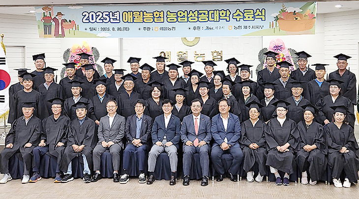 애월농협(조합장 김병수)은 지난 28일 애월농협 임원 및 농업성공대학 수료생 등 90여 명이 참석한 가운데 '2025년 애월농협 농업성공대학 수료식'을 개최했다.