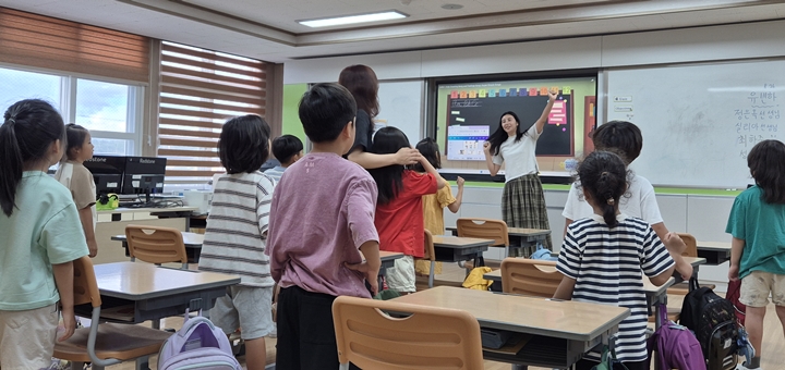 1학년 교실에서는 또 다른 풍경이 펼쳐졌다. 평대초가 올해부터 글로벌역량학교로 지정·운영되면서, 원어민 교사와 함께하는 영어수업이 이뤄졌다. 아이들은 처음 배우는 표현도 주저하지 않고 큰 목소리로 따라 했으며, 선생님의 질문에도 자신감 있게 대답했다.