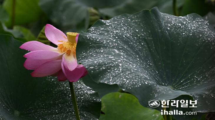 빗물 머금은 상대리 연못의 연잎. 한라일보DB