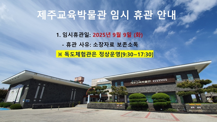 [한라일보] 제주교육박물관이 오는 9일 임시 휴관한다.