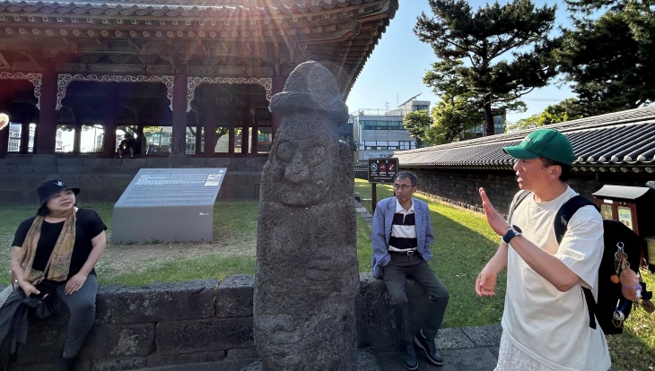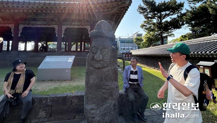 제주목 관아 관덕정 앞에서 제주 역사에 대해 교육 중인 왕준호 대표. 왕준호 대표 제공