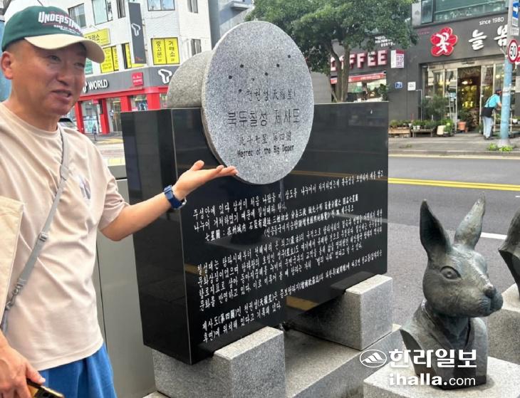 제주시 칠성대에 대해 설명 중인 왕준호 대표. 왕준호 대표 제공