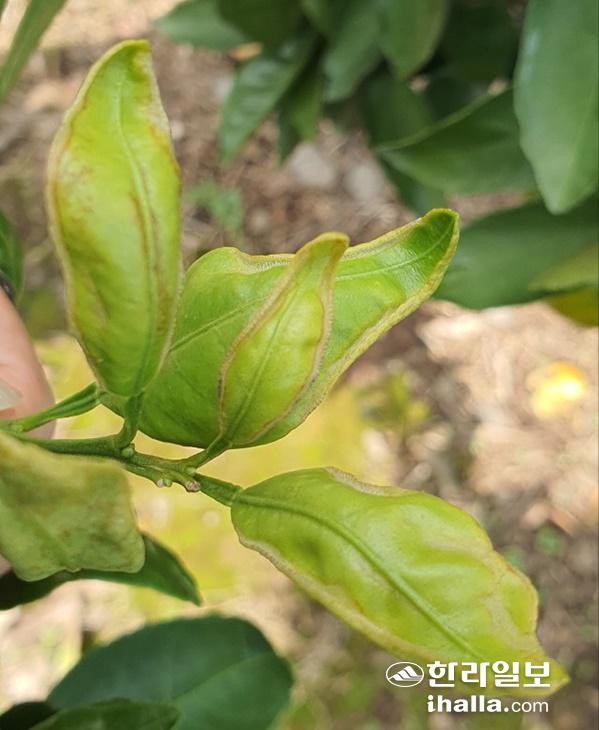 노지 감귤 볼록총재벌레 피해. 제주도 농업기술원 제공