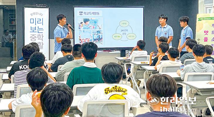 남주중학교(교장 강영철)는 지난 2일 서귀포초등학교와 서귀중앙초등학교 6학년 남학생들을 대상으로 '미리보는 중학 생활' 학교 설명회를 실시했다.