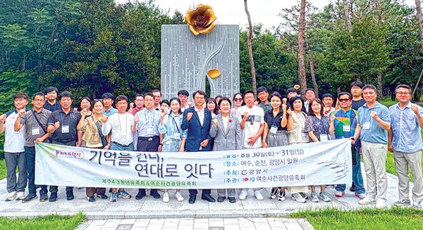 [한라일보] 제주4·3희생자유족청년회(회장 최재현)는 지난달 30~31일 전남 여수·순천·광양·구례 일대에서 열린 여순10·19 교류행사에 참가했다. '기억을 건너, 연대로 잇다'를 주제로 진행된 이번 행사는 광양시(시장 정인화) 주최, 여순사건광양유족회(회장 박선호) 주관으로 마련됐다.