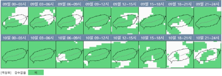9일부터 10일까지 강수 예상도. 기상청 홈페이지 캡처