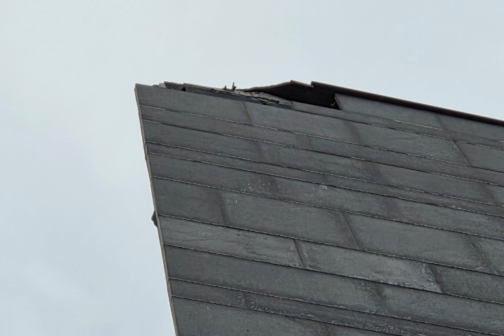 소방 확인 결과 옥상 난간과 외벽 마감재 일부가 파손됐다. 다친 사람은 없었다.