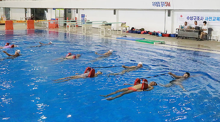 대한적십자사 제주특별자치도지사(회장 정태근)는 제주적십자사 수상안전강사봉사회(회장 임성호)와 함께 최근 한라수영장과 제주적십자사에서 수상구조사 사전교육을 진행했다.
