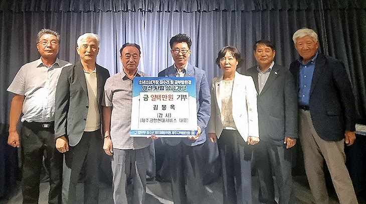 법무부 청소년범죄예방위원 제주지역협의회(회장 고영두) 청소년범죄예방위원 김봉옥 감사(제주공항현대서비스 대표)는 최근 '소년소녀가장돕기 공부방 환경개선 사업'진행을 위한 성금 100만원을 전달했다.