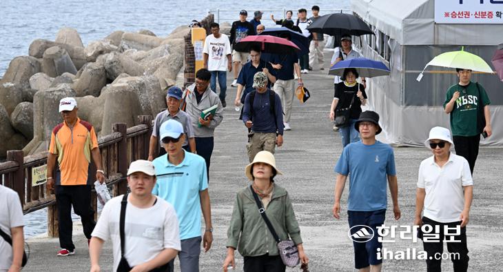 [한라일보] 9일 마라도 탐방을 마친 관광객들이 유람선에서 내려 서귀포시 대정읍 산이수동 선착장을 나서고 있다. 강희만기자