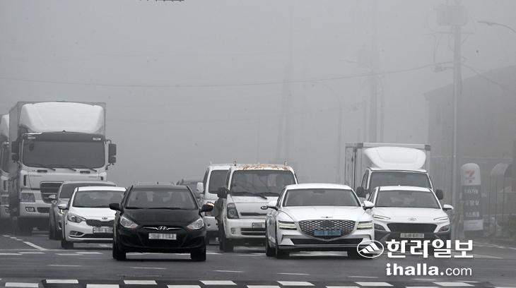 [한라일보] 10일 제주시 조천읍 교래리 남조로 일대에 안개가 끼어 운전자들의 불편을 겪었다. 강희만기자