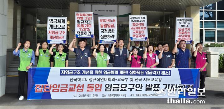 [한라일보] 제주지역 학교 비정규직 노동자들이 저임금 구조개선을 위한 임금체계 개편을 촉구하고 나섰다.