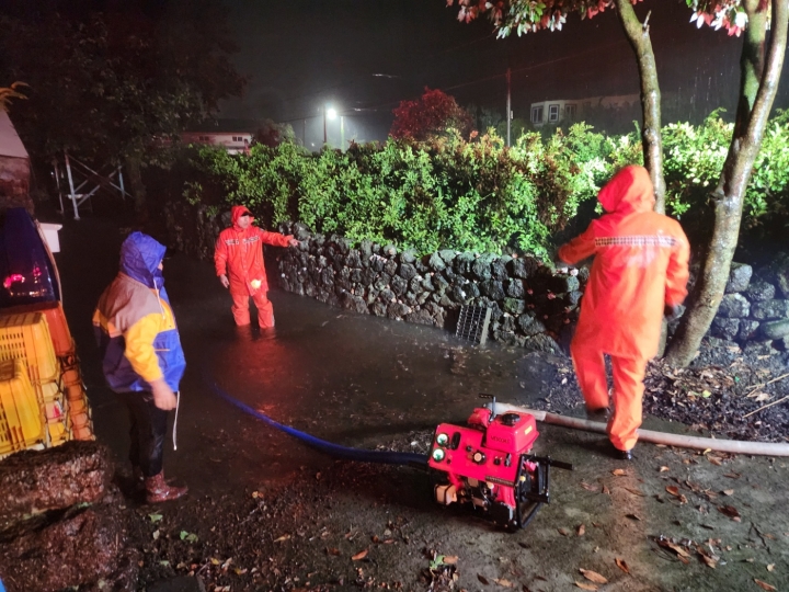 12일 오전 4시 7분쯤 서귀포시 남원읍 의귀리에 호우로 인한 주택 침수가 발생했다. 제주소방안전본부 제공